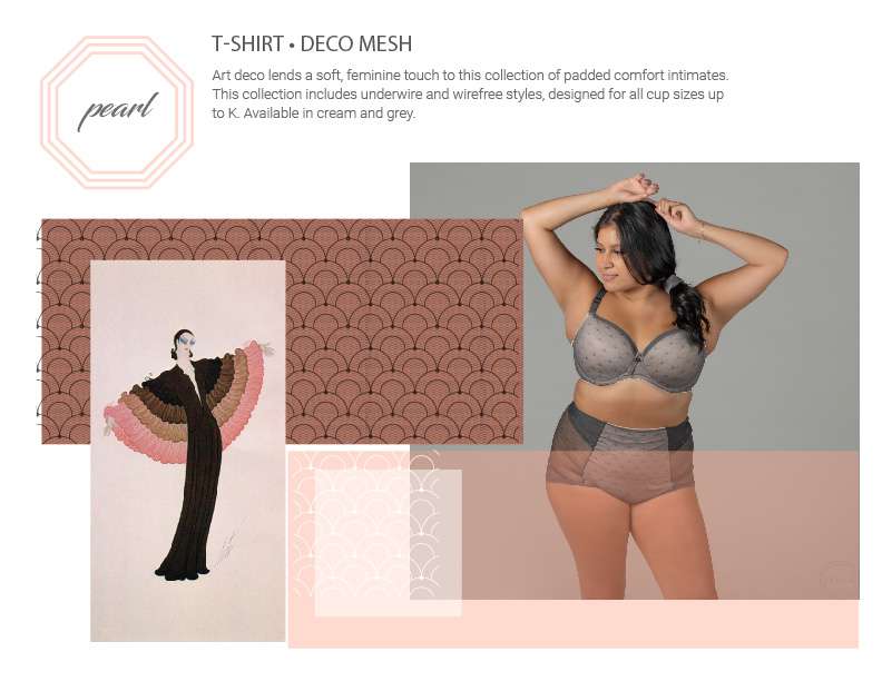 Art deco Mesh lends a soft, feminine touch to this collection of t-shirt...