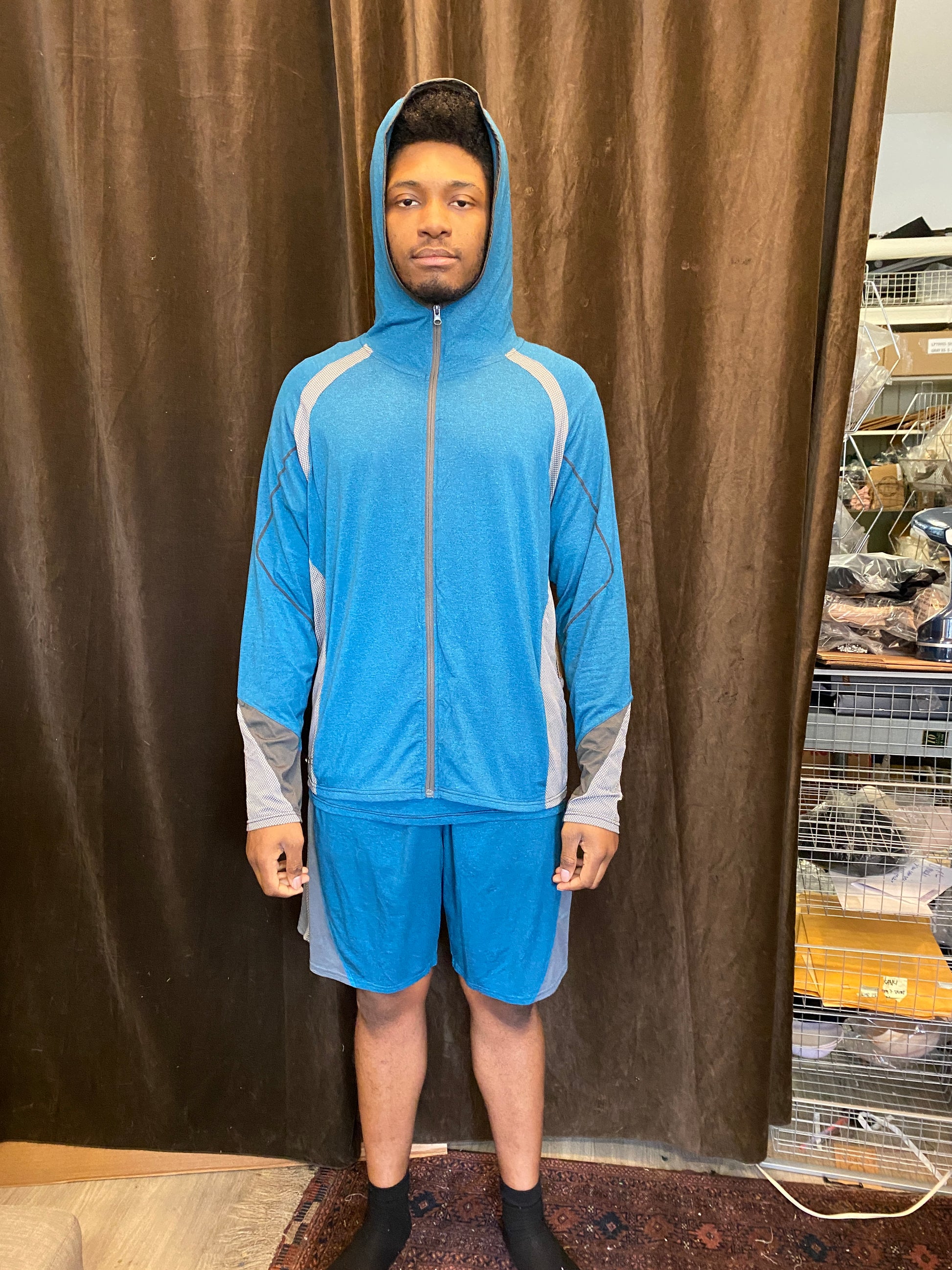 2 Colors: Camo Green Grey blocking, Blue Grey | with Grey Jacquard